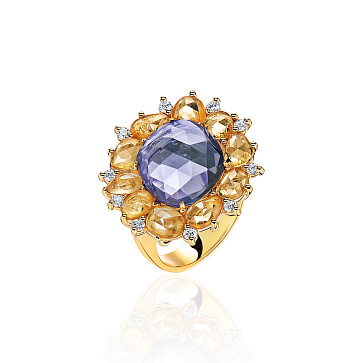 Золотое кольцо с танзанитом, сапфирами и бриллиантами