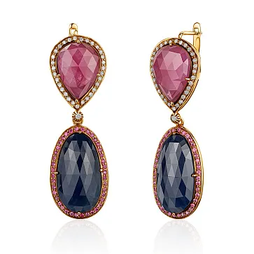Золотые серьги с сапфирами и бриллиантами 0,36 карат