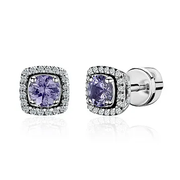 Золотые серьги с бриллиантами и танзанитами 1,08 карат