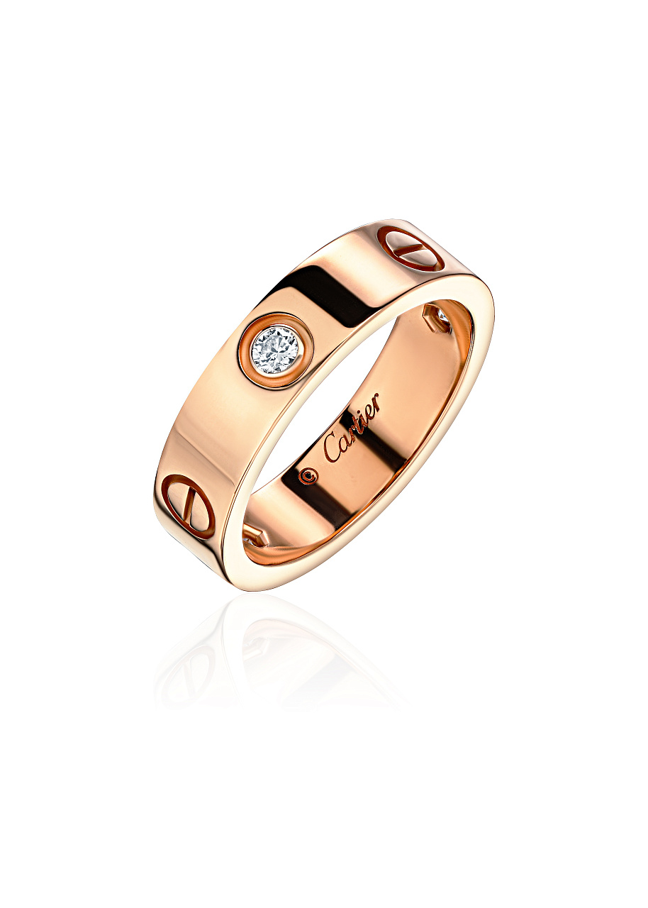 Кольцо бренда Cartier коллекции "Love" с 3 бриллиантами круглой огранки. Ширина кольца 5,5 мм.