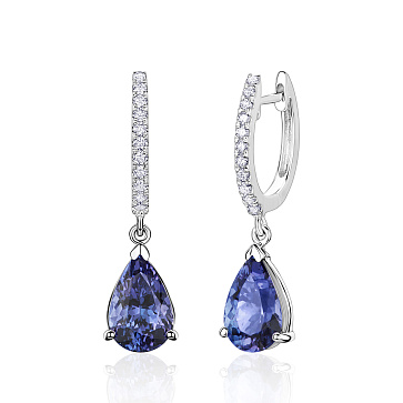 Золотые серьги с природными танзанитами и бриллиантами 2,82 карат