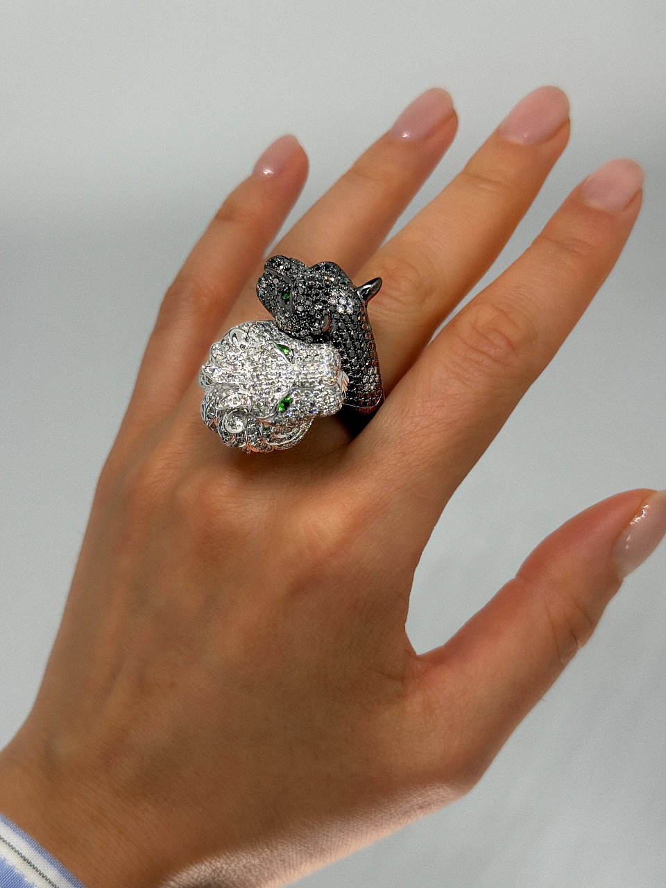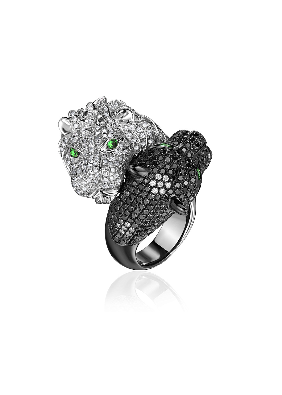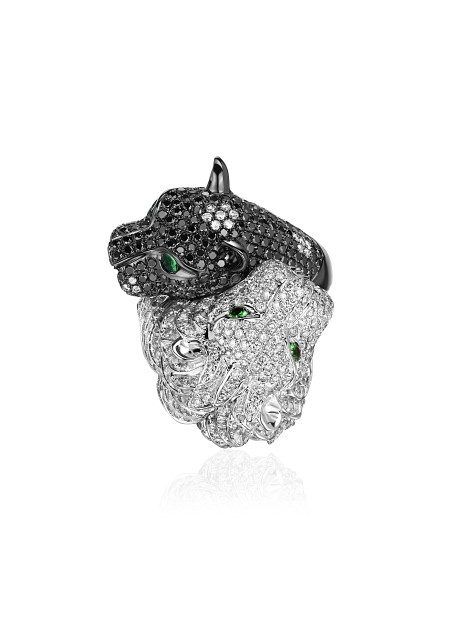 Белые бриллианты ~5,30 ct. (4/4), Чёрные бриллианты ~3,00 ct., Изумруды