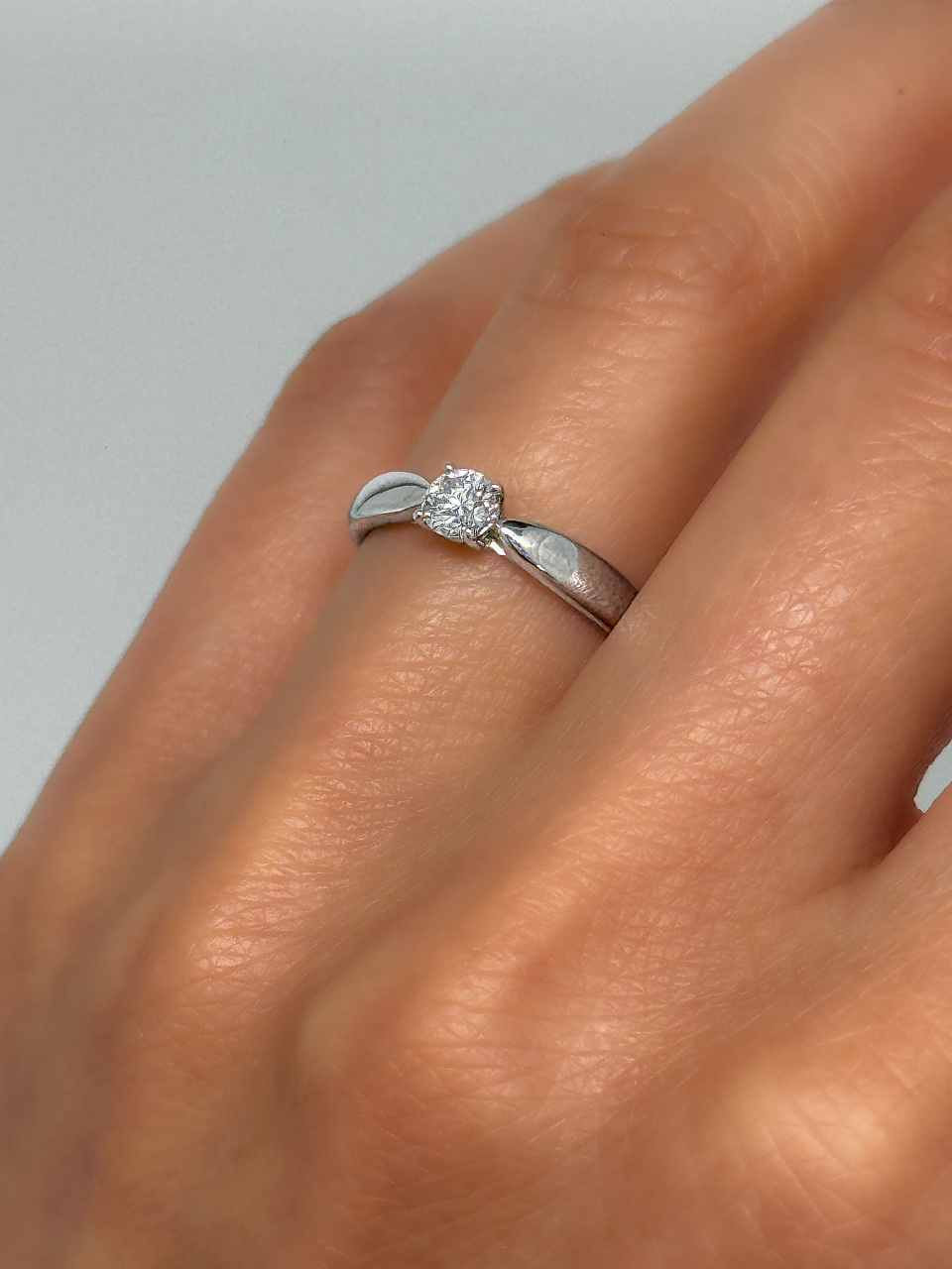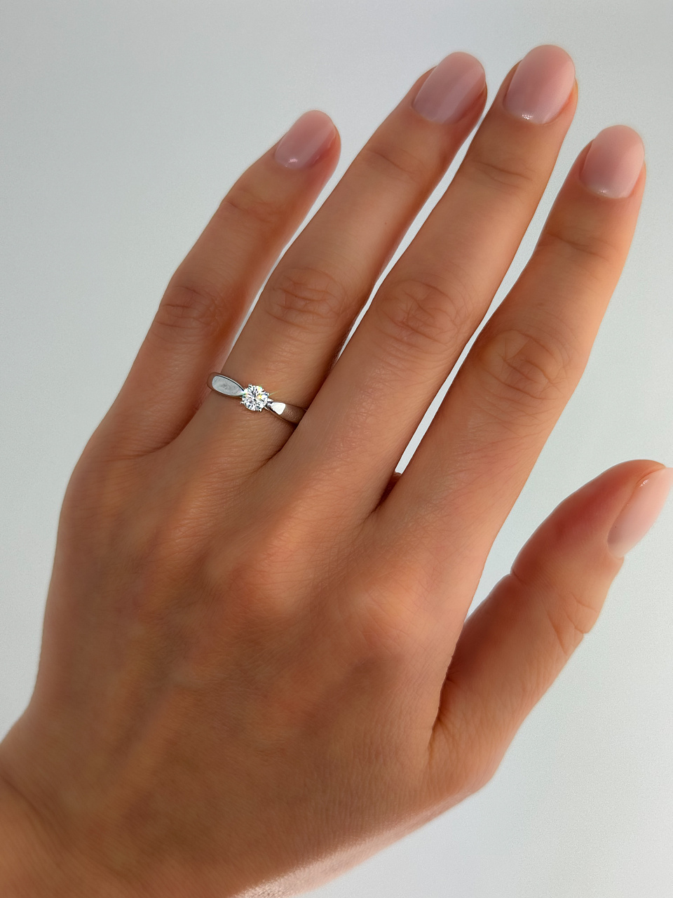 Кольцо выполнено из платины 950 пробы с бриллиантом круглой огранки 0,21 ct. (H/VS1). Коллекция Harmony.
