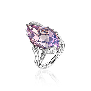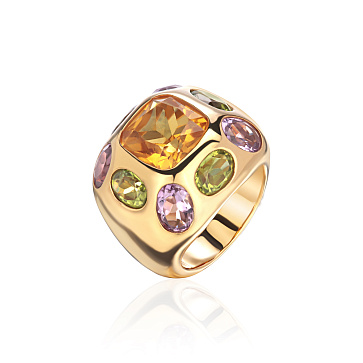Золотое кольцо с цитрином, аметистами и хризолитом
