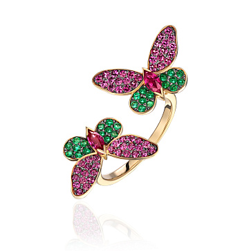 Золотое кольцо с цветными сапфирами "Бабочки"
