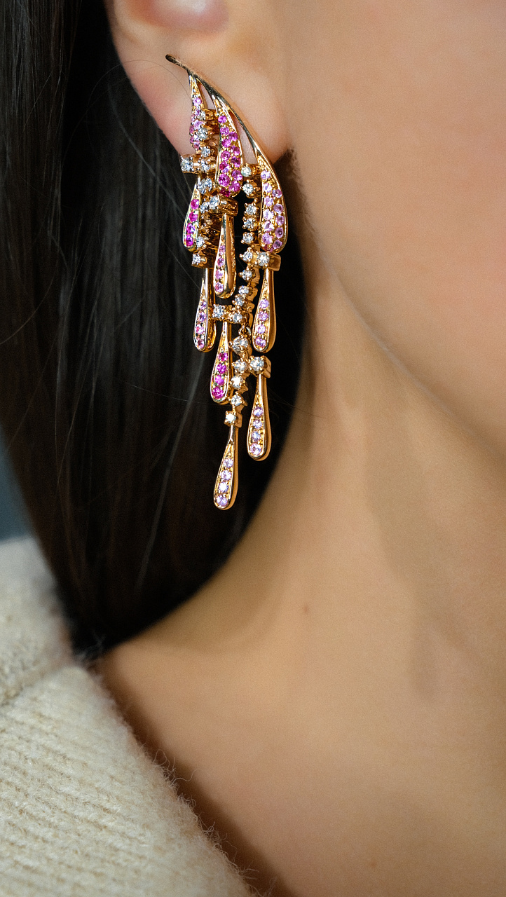 Бриллианты 58 шт. 1,16 ct. (2/2), Розовые сапфиры: - 54 шт. 0,83 ct. (Fancy Light Pinkish/ T2) - 32 шт. 0,50 ct. (Fancy Purplish / T2)