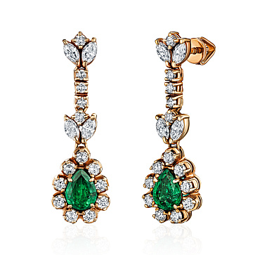 Золотые серьги с природными изумрудами и бриллиантами