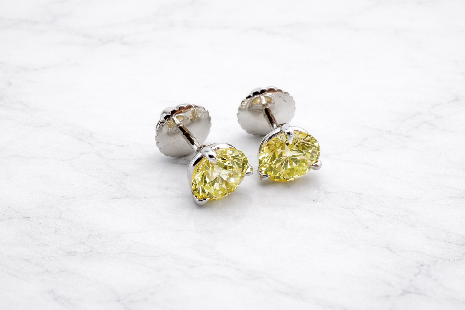 Бриллианты: - 1 шт. кр-57 1,54 ct. (Fancy Light Yellow/VVS1) - 1 шт. кр-57 1,50 ct. (Fancy Yellow/VVS1)