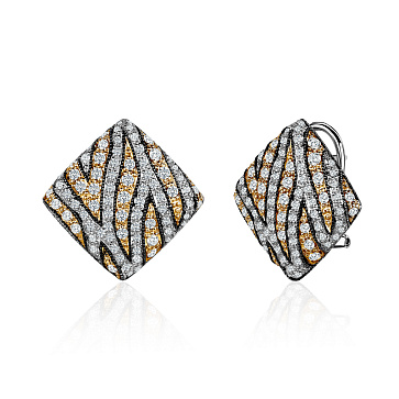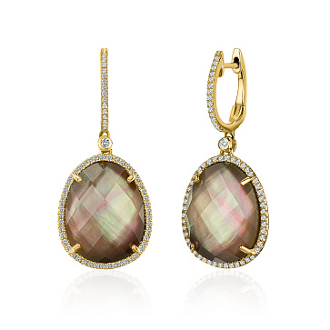 Золотые серьги с кварцем и бриллиантами 0,34 карат