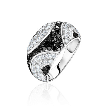 Золотое кольцо с чёрными и белыми бриллиантами 0,85 карат
