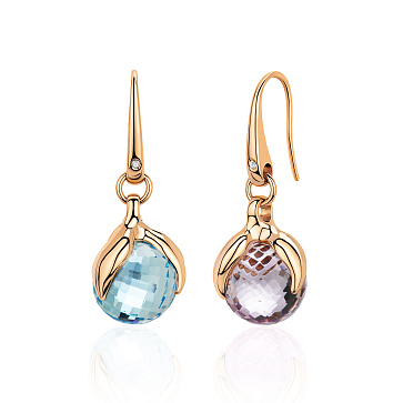 Золотая подвеска с кварцем и бриллиантами "Сердце"