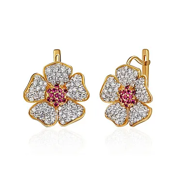 Золотые серьги с рубинами и бриллиантами 2,10 карат