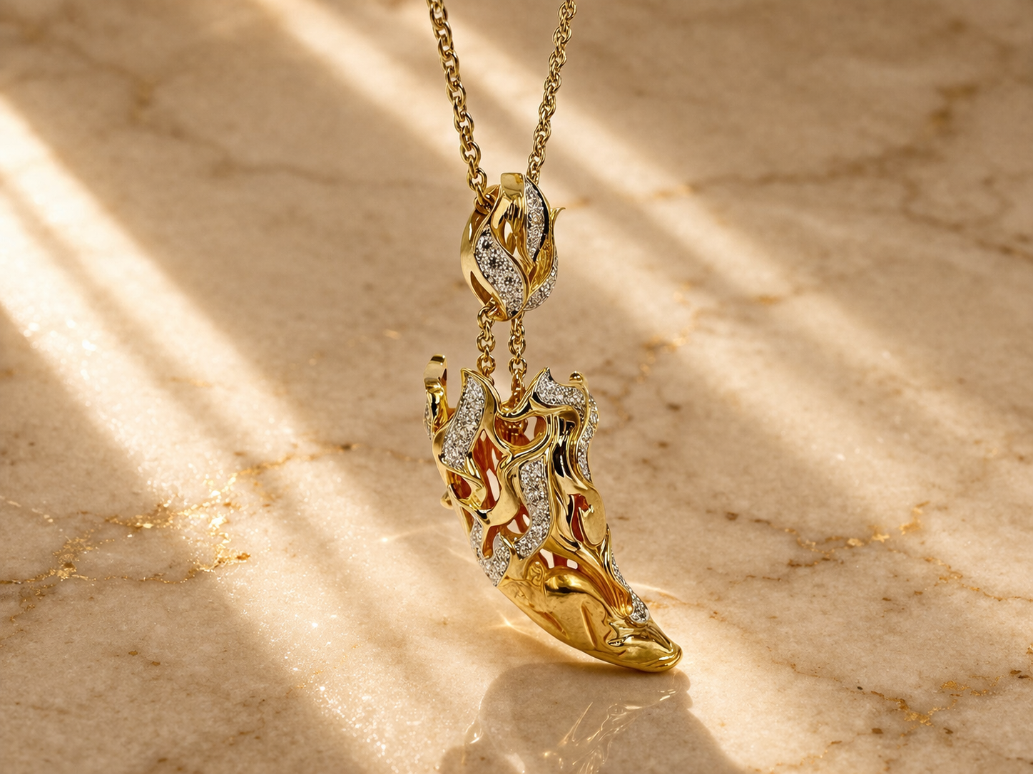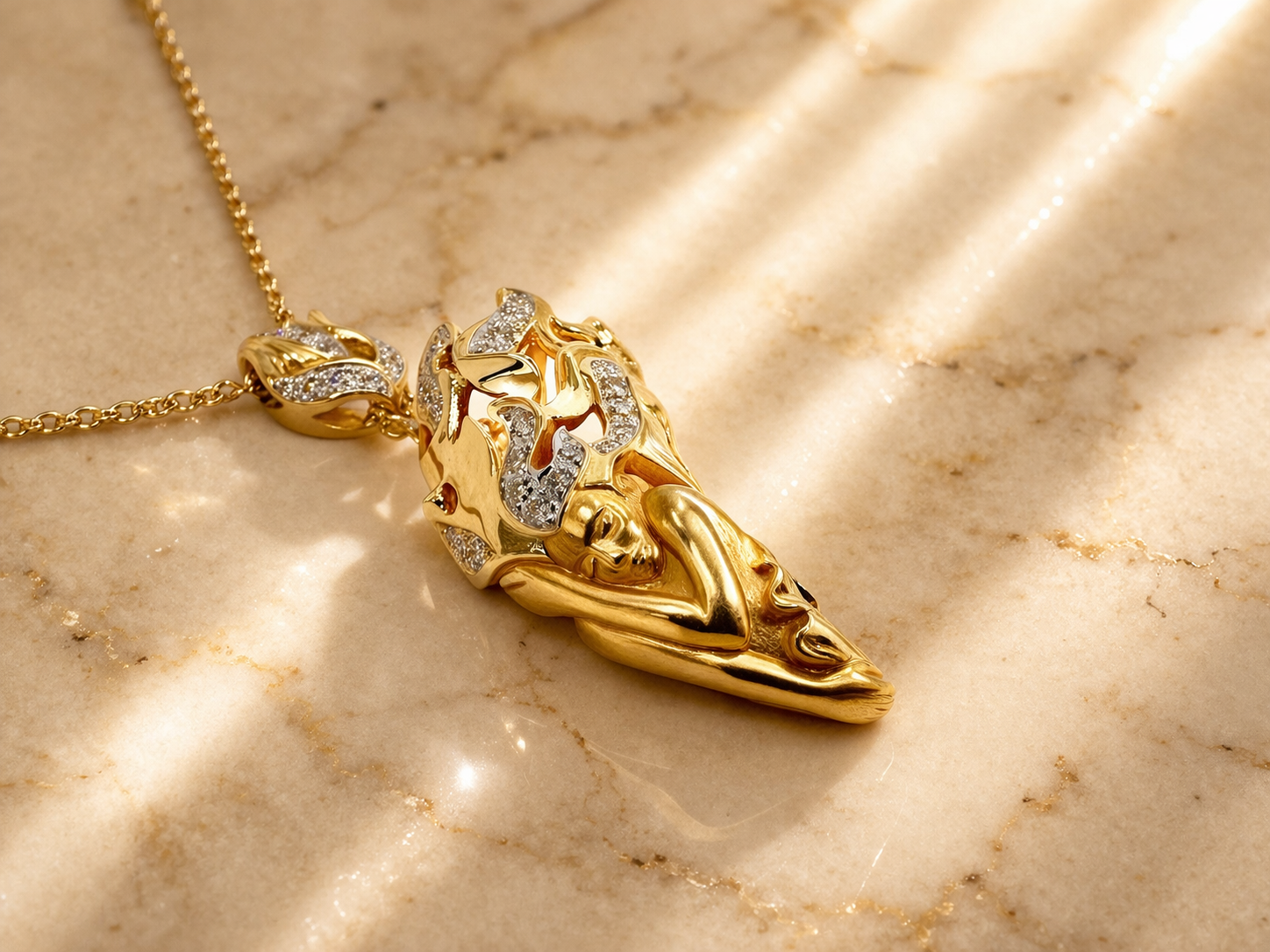 Золотая подвеска ручной работы с бриллиантами 1,12 карат