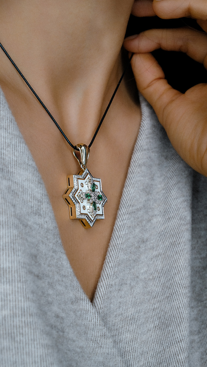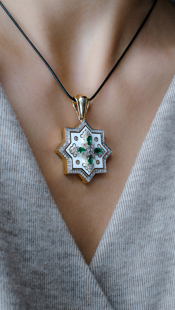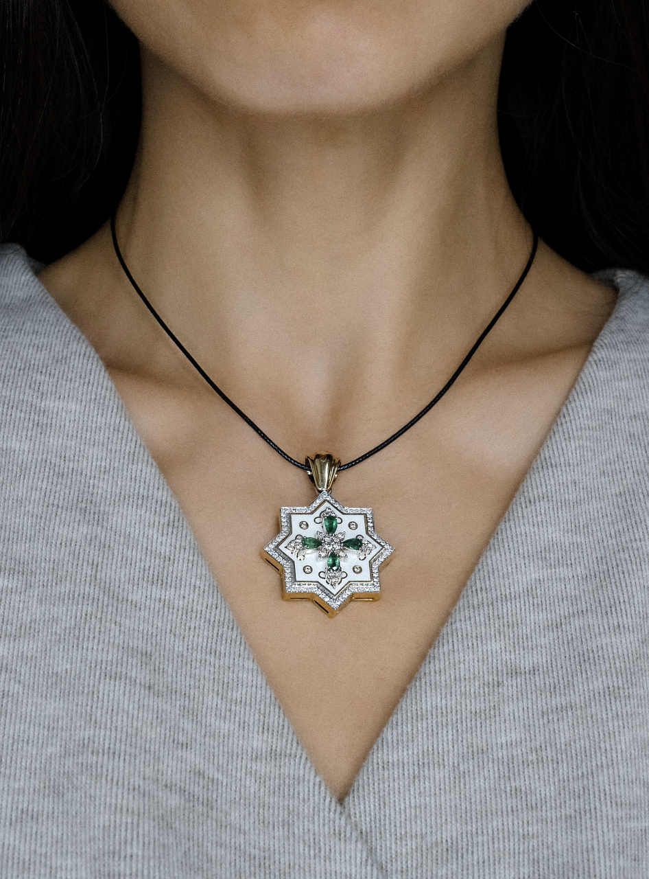 Золотая подвеска с изумрудами и бриллиантами "Звезда Давида"