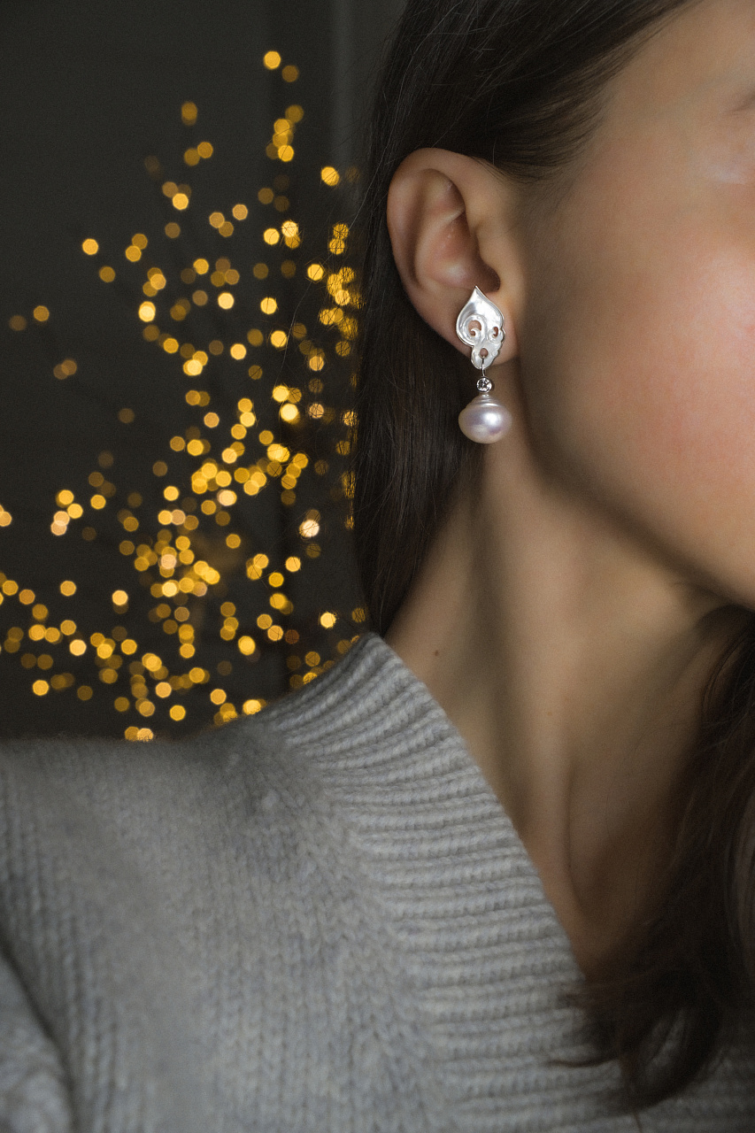 Жемчуг культивированный, перламутр, бриллианты 2 шт. Кр-57 0,22 ct. (3/3)