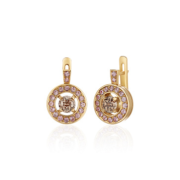 Золотые серьги с кварцем и бриллиантами 0,34 карат