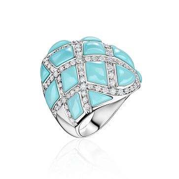 Золотое кольцо с бирюзой и бриллиантами 1,15 карат