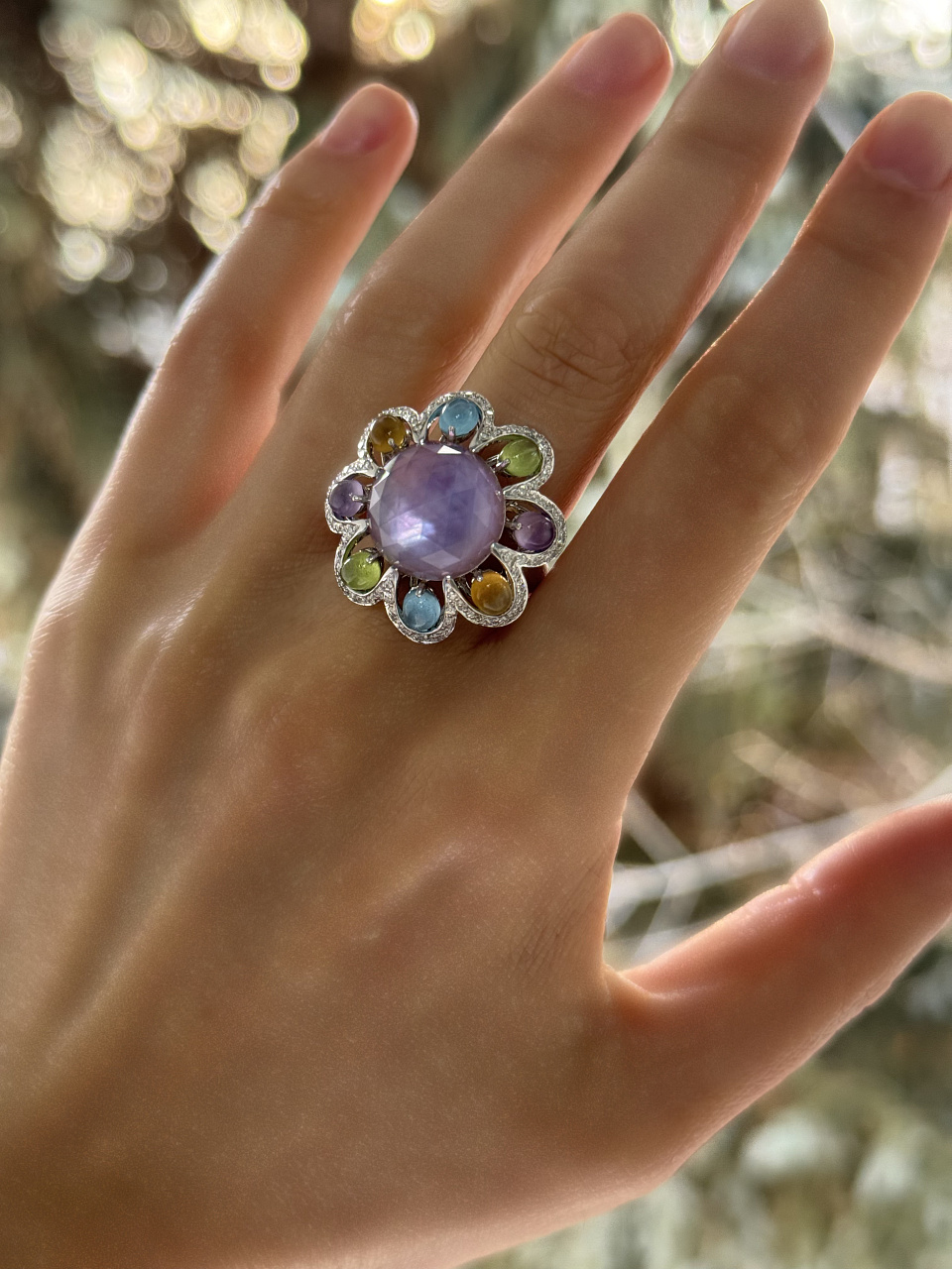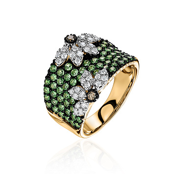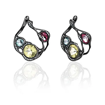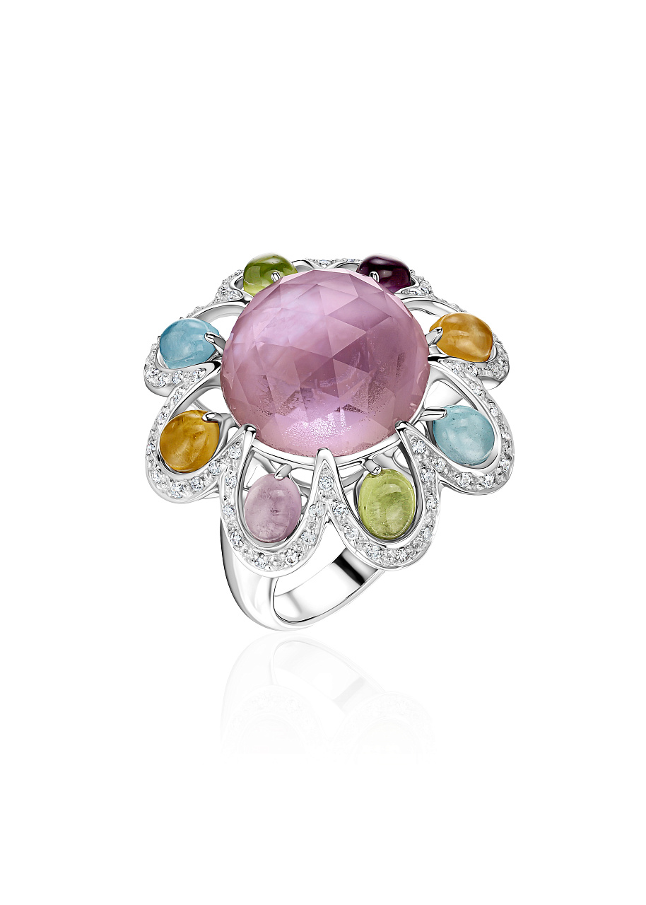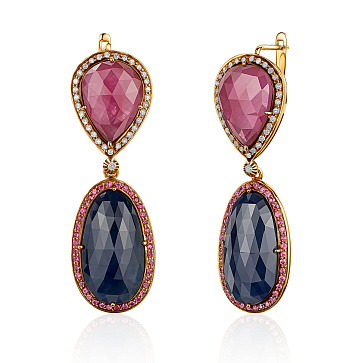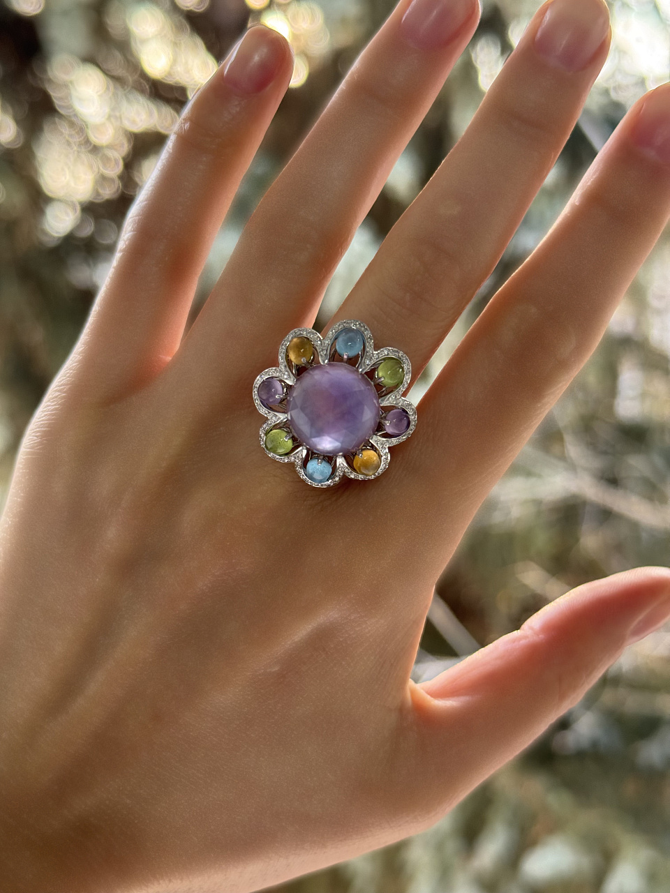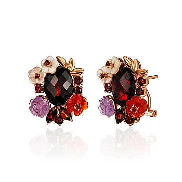 Бриллианты 64 шт. Кр-57 0,34 ct. (4-5/4-5), Аметисты огранки "кабошон" 3 шт., Хризолиты огранки "кабошон" 2 шт., Цитрины огранки "кабошон" 2 шт., Топазы 2 шт. огранки "кабошон" 2 шт.