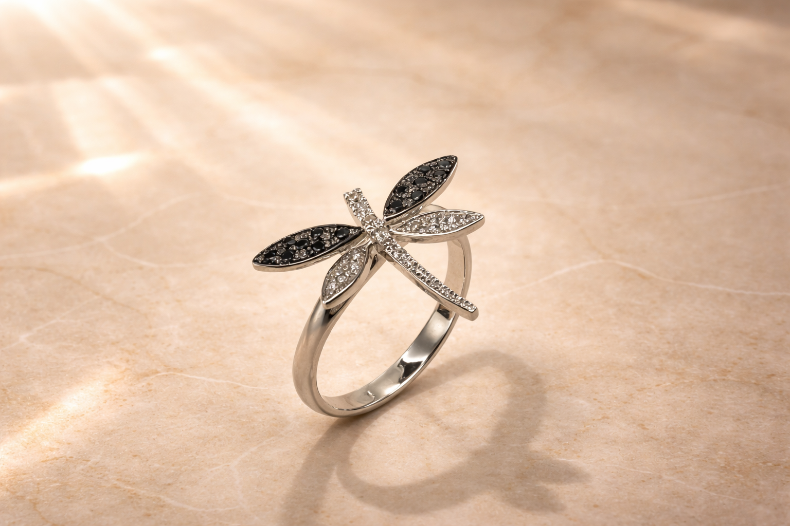 Бриллианты: - белые 14 шт. 0,07 ct. (3/3) - черные 14 шт. 0,08 ct.