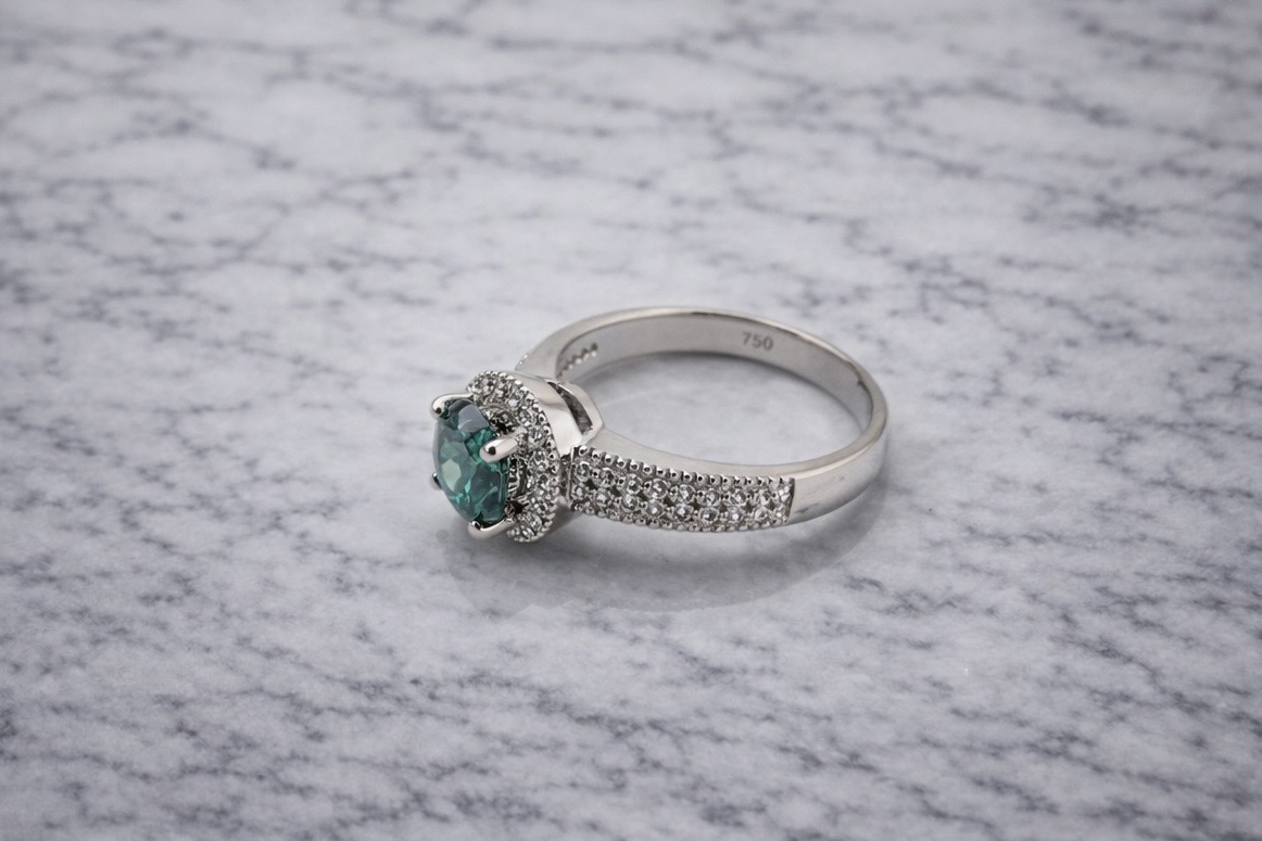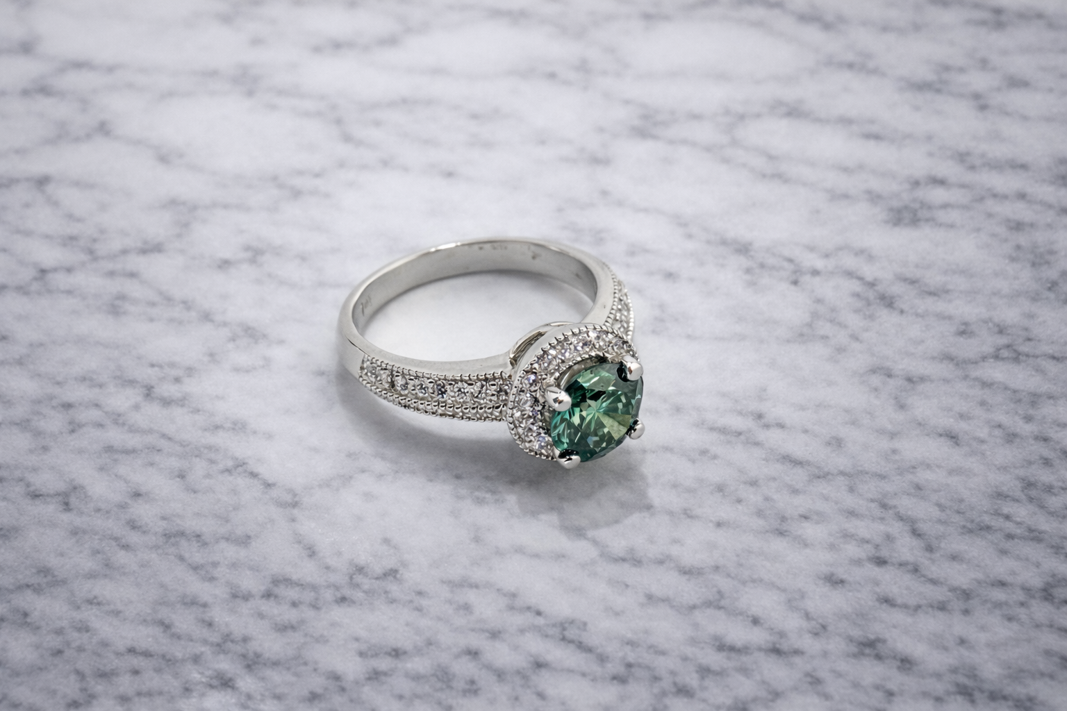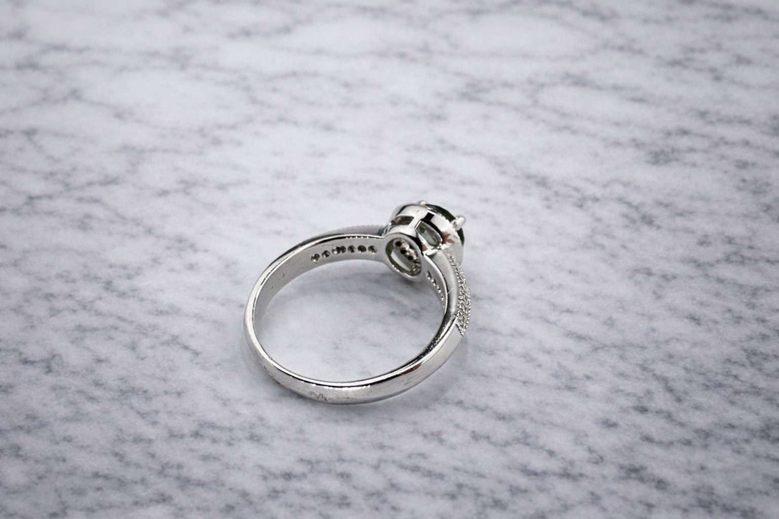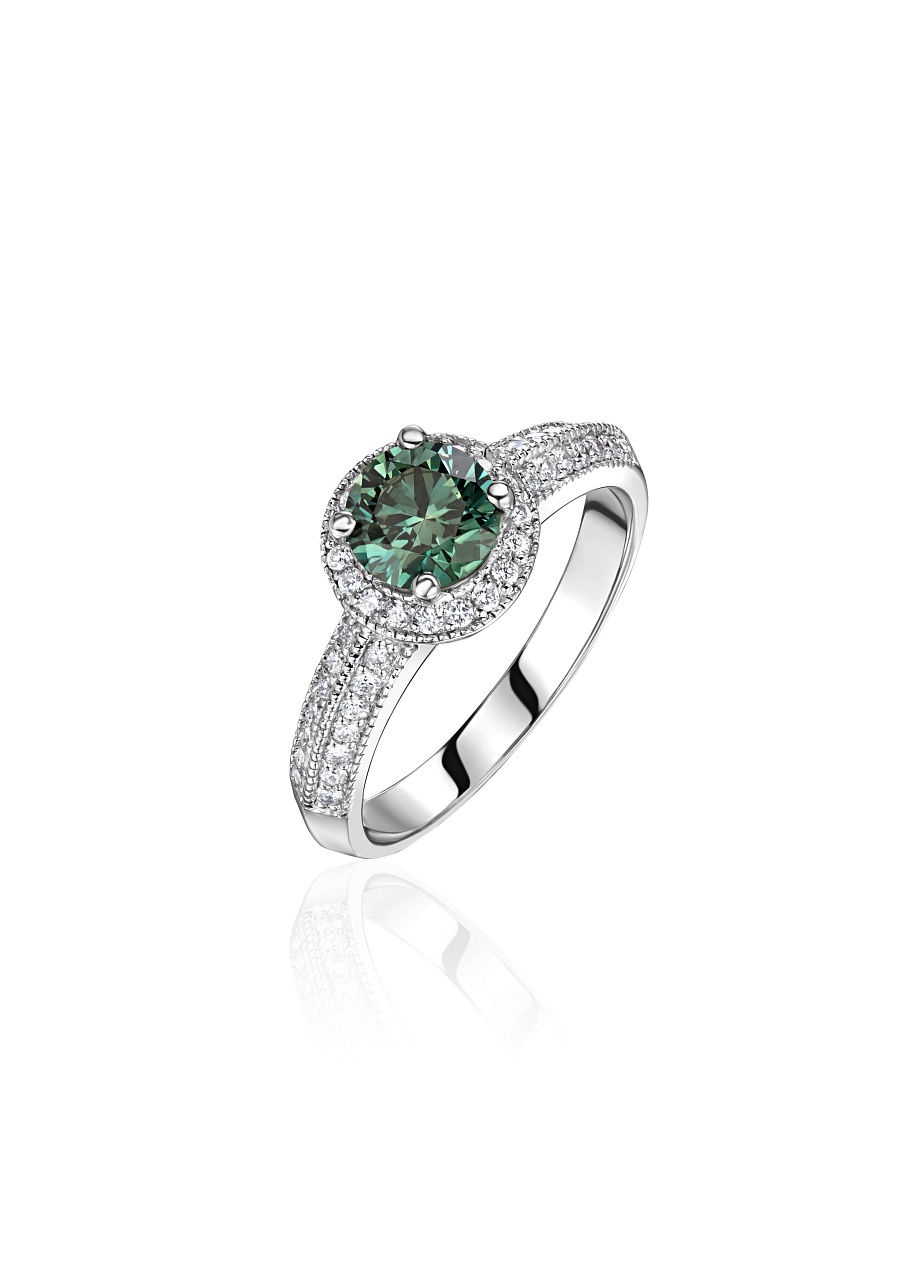 Бриллианты: - 1 шт. Кр-57 1,05 ct. (Fancy Deep Blue Green / SI2) - 46 шт. Кр-57 0,30 ct. (3-4/5)