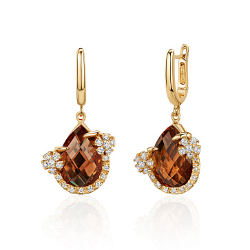 Золотые серьги с кварцем и бриллиантами 0,34 карат