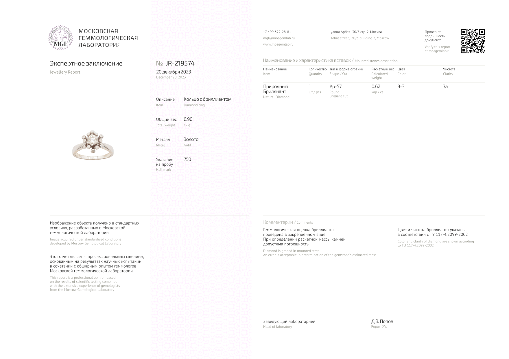 GIA, МГУ или MGL на изделия с драгоценными камнями
