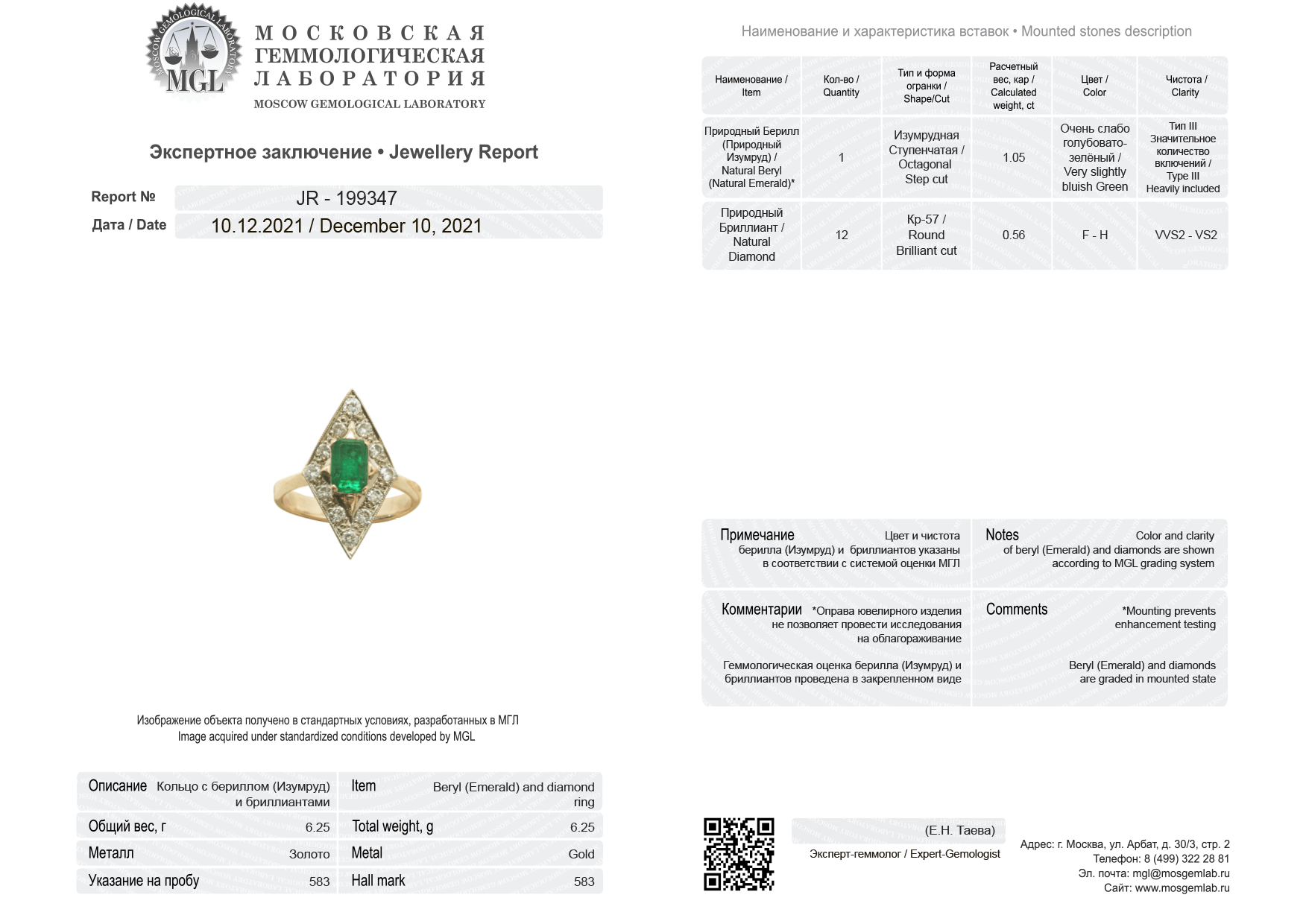 GIA, МГУ или MGL на изделия с драгоценными камнями