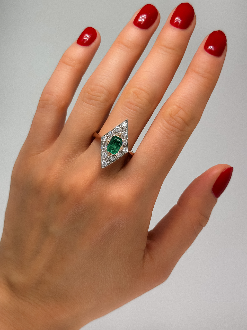 Золотое кольцо с природным изумрудом и бриллиантами СССР