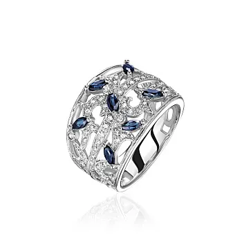 Золотое кольцо с сапфирами и бриллиантами 0,25 карат