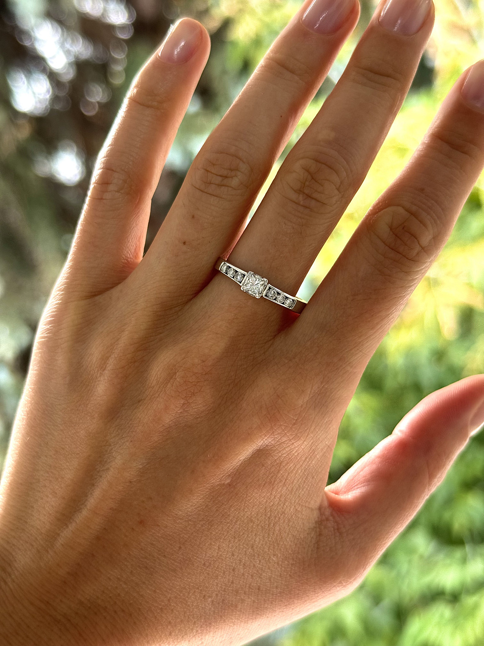 Бриллианты: - 1 шт. огранки "принцесса" 0,31 ct. (G/SI1) - 6 шт. Кр-57 0,25 ct. (3/5)