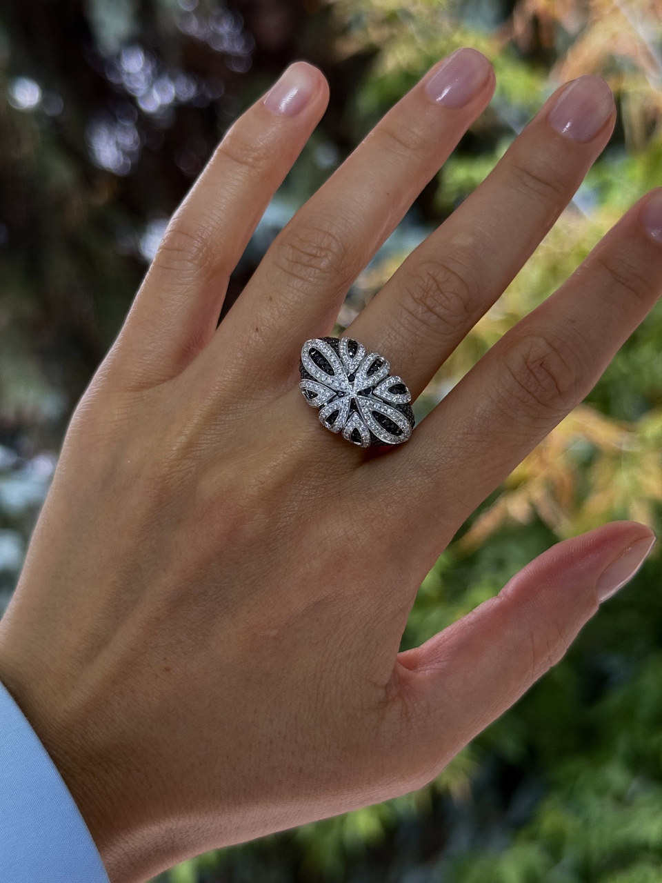Бриллианты: - белые 152 шт. 0,79 ct. (3-4/4-5) - черные 170 шт. 0,93 ct.