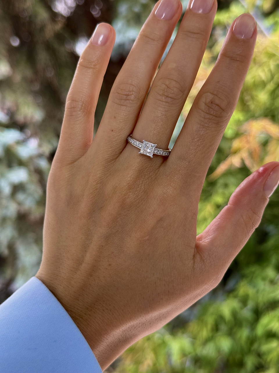 Бриллианты: - 1 шт. огранки "принцесса" 1,01 ct. (2/5A), - 16 шт. Кр-57 0,18 ct. (3/6A)