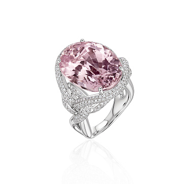 Золотое кольцо с кунцитом и бриллиантами 1,70 карат