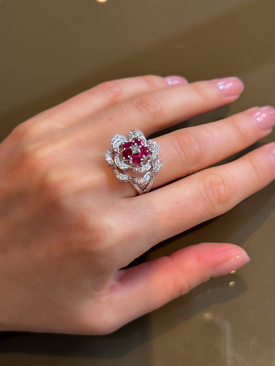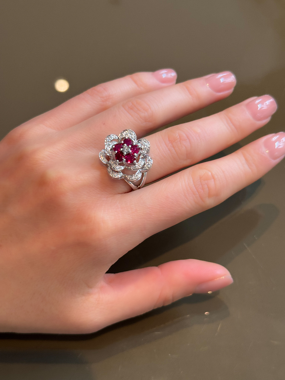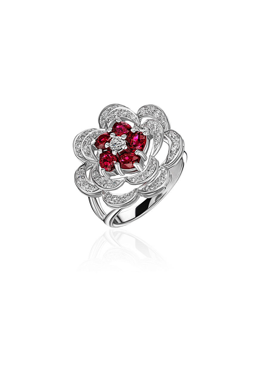 Бриллианты 56 шт. Кр-57 0,32 ct. (3-4/5-6), Рубины 5 шт. огранки "овал" 1,25 ct.