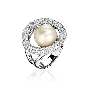 Золотое кольцо с жемчугом и бриллиантами 2,11 карат