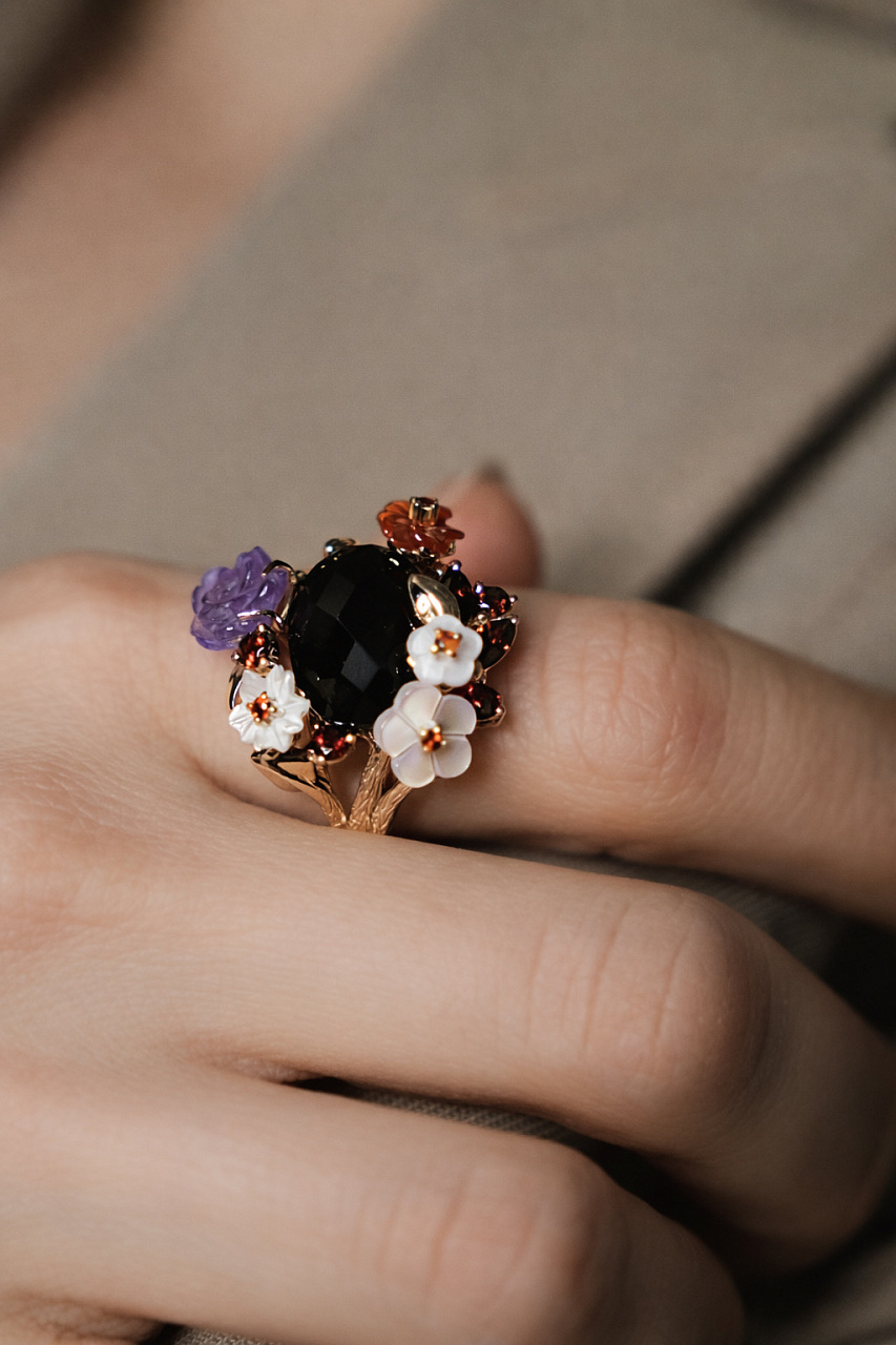 Золотое кольцо с цветными сапфирами "Бабочки"