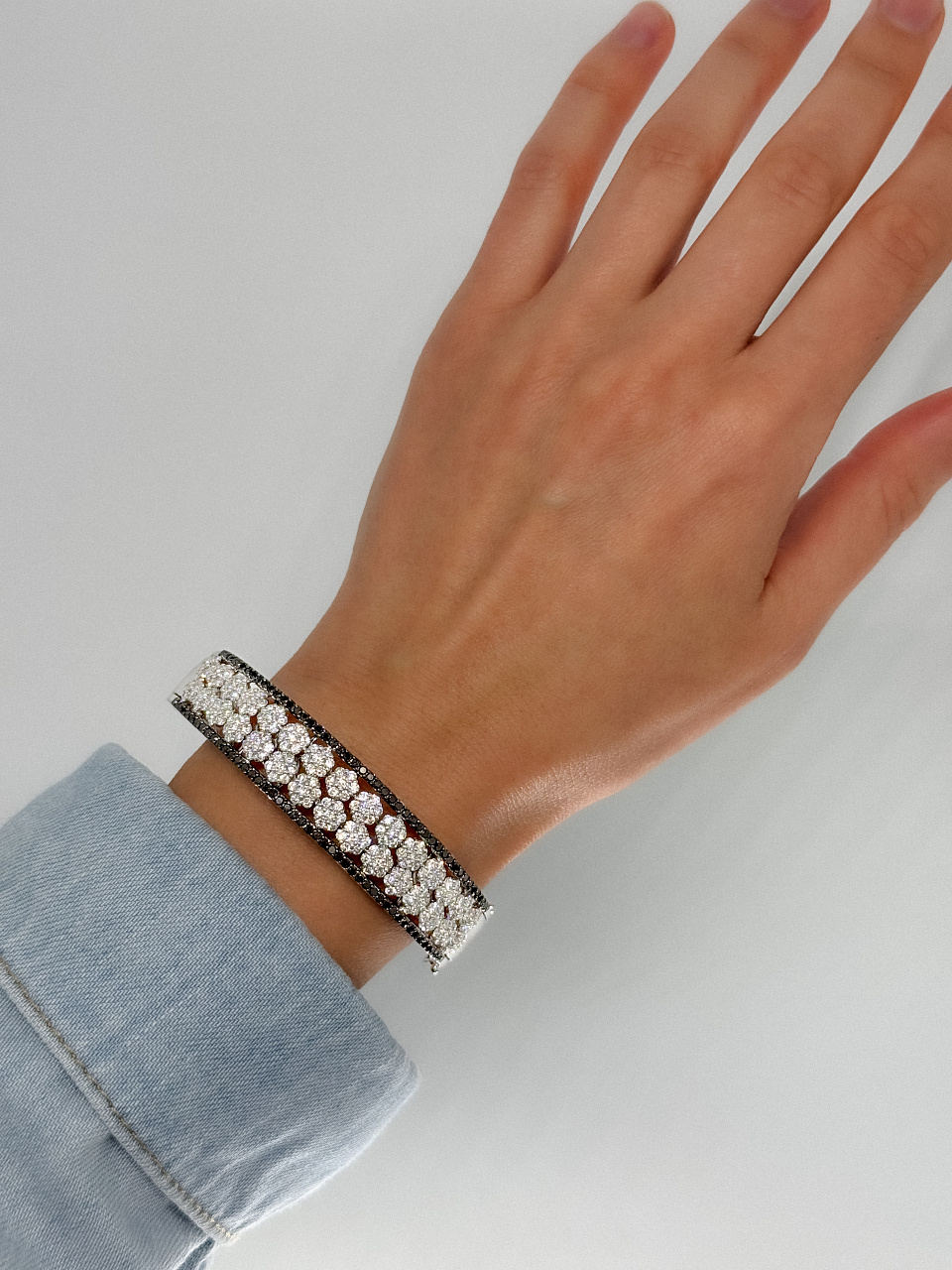 Бриллианты:- белые 210 шт. Кр-57 4,35 ct. (4-3-5)- черные 94 шт. 0,51 ct.