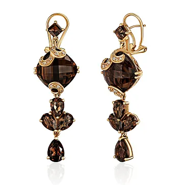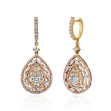 Золотые серьги с бриллиантами и розовыми сапфирами 1,20 карат