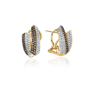 Золотые серьги с природными бриллиантами и сапфирами 0,37 карат