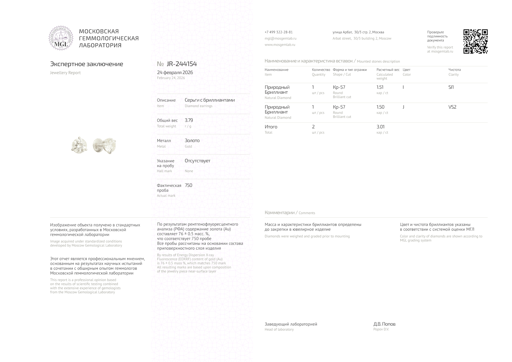 GIA, МГУ или MGL на изделия с драгоценными камнями