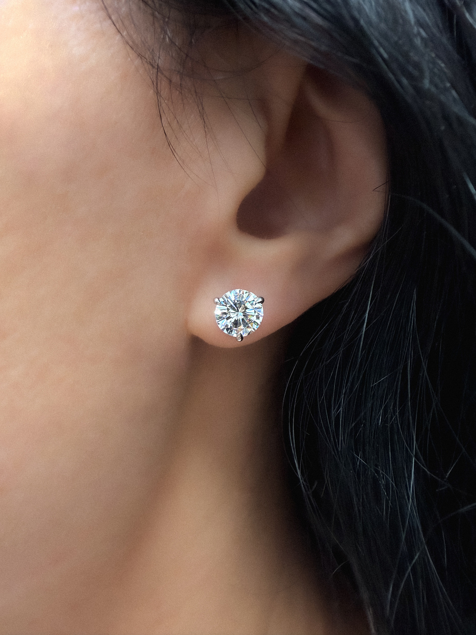 Золотые серьги - пусеты с бриллиантами 3,01 карат