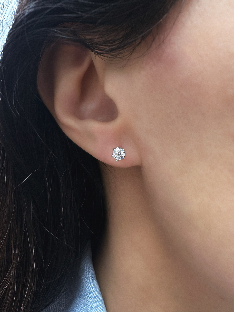 Золотые серьги - пусеты с природными бриллиантами 1 карат