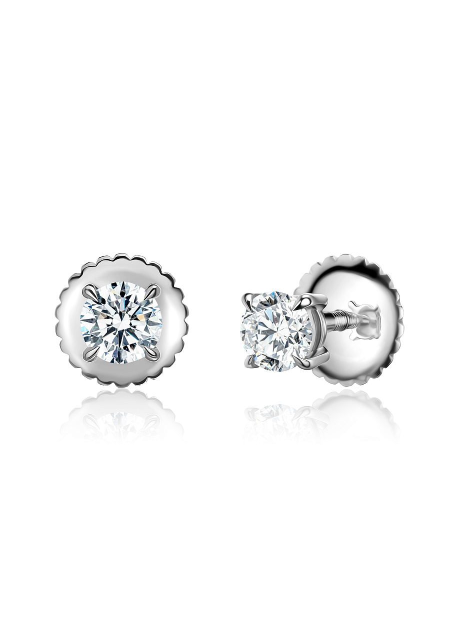 Золотые серьги - пусеты с природными бриллиантами 1 карат