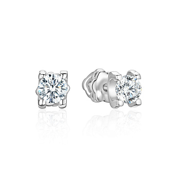 Золотые серьги - пусеты с природными бриллиантами 1 карат