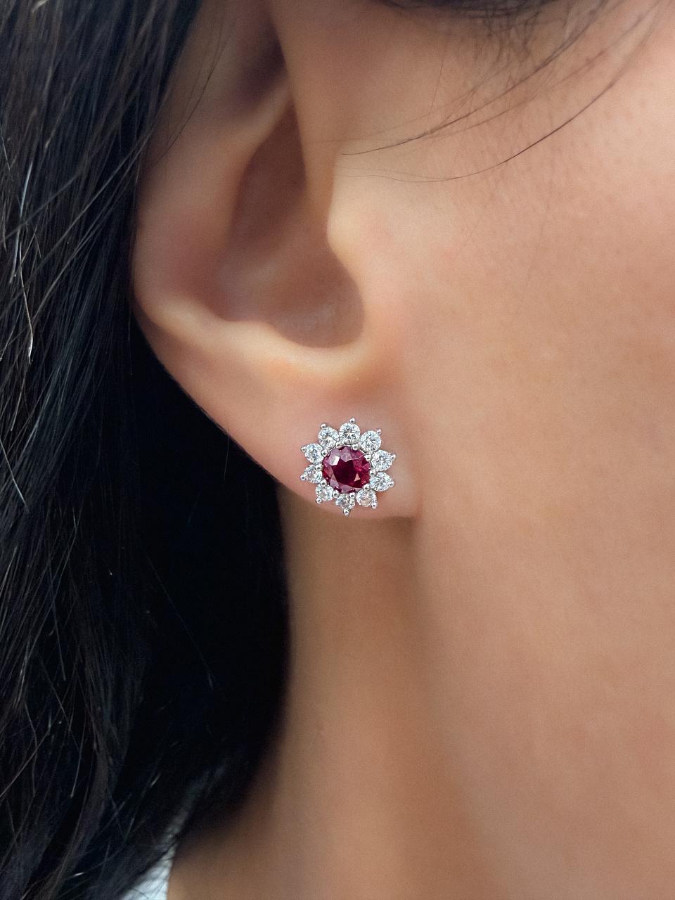 Золотые серьги-пусеты с природными рубинами и бриллиантами