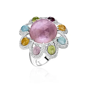 Золотое кольцо с аметистом и бриллиантами 0,22 карата