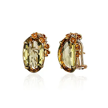 Золотое кольцо с топазом и бриллиантами 0,11 карат