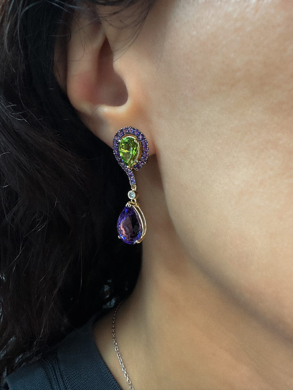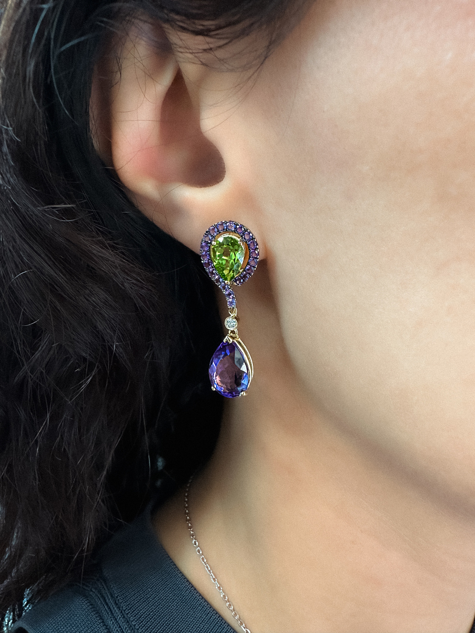 Хризолиты 2 шт. огранки "груша" 4,60 ct., Аметисты 2 шт. огранки "груша" 10,22 ct., Аметисты 40 шт. 0,67 ct., Бриллианты 2 шт. 0,08 ct. (3/4)
