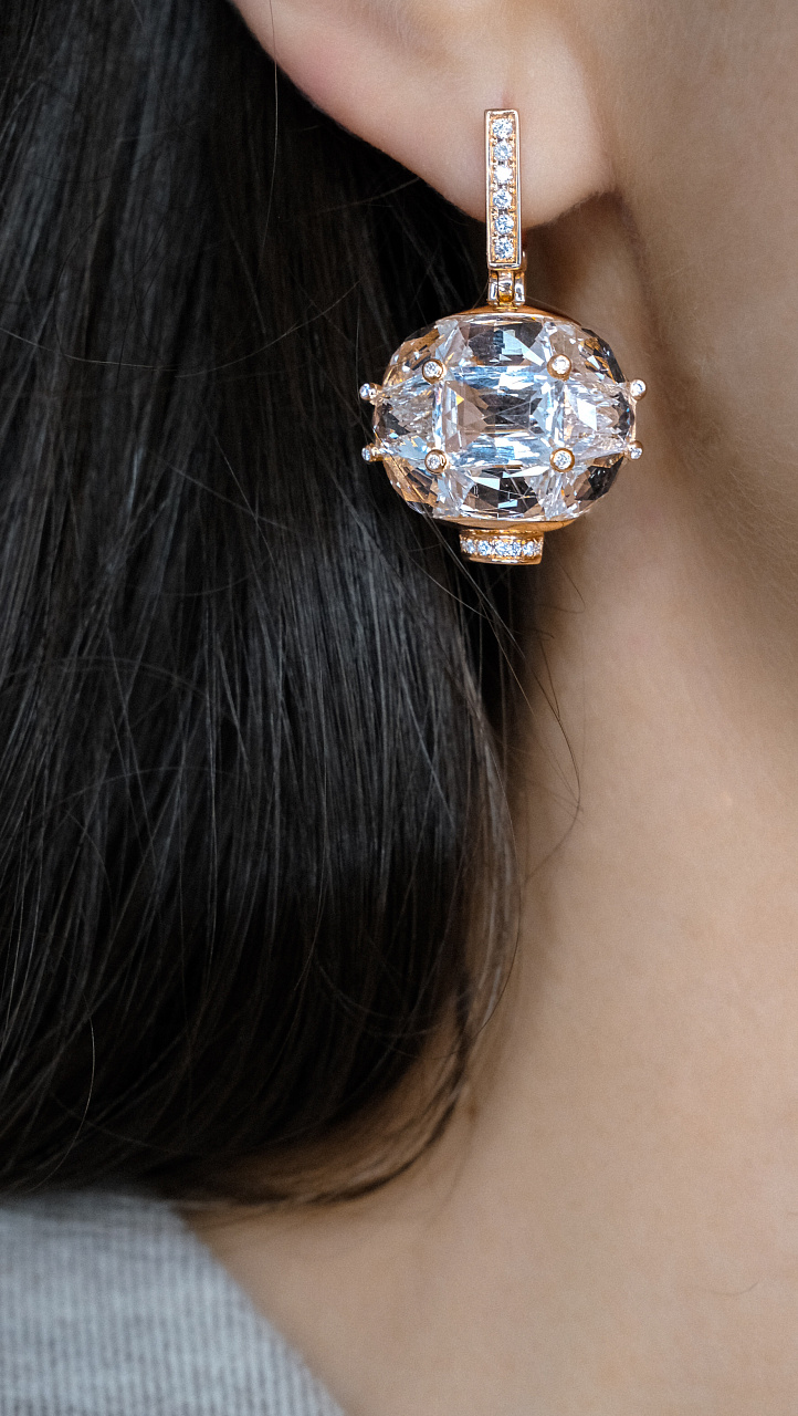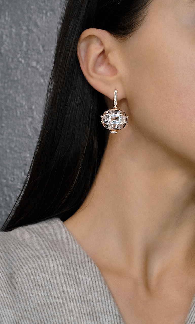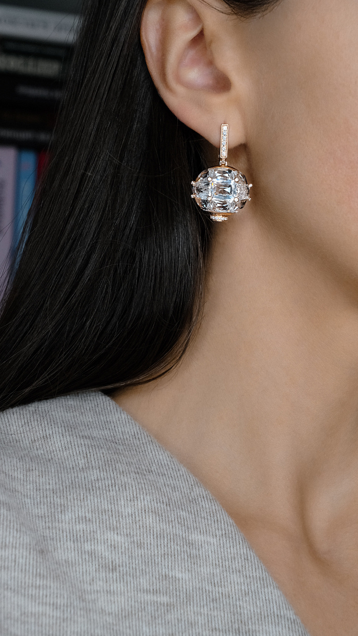 Золотые серьги с кварцем и бриллиантами 0,30 карат