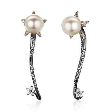 Золотые серьги с жемчугом и бриллиантами 1,09 карат